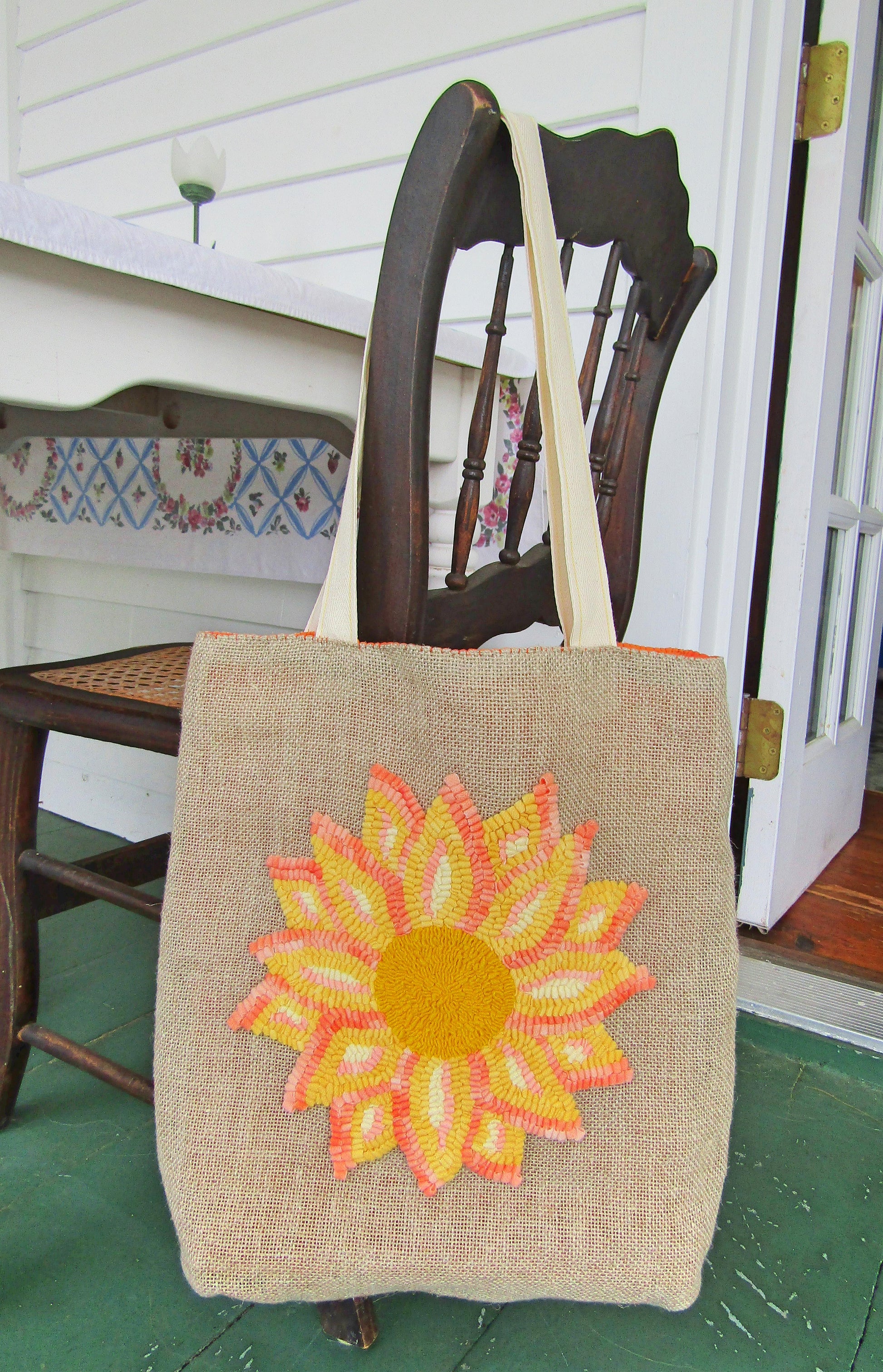 Evening Sunflower tote bag - 14" x 16" - functional art - seen in Heritage Skills for Contemporary Life